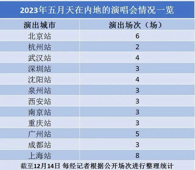 自2023年5月26日至2023年11月21日,五月天在半年本领内就唱了47场。有业内东谈主士曾向记者示意,毛糙揣摸,五月天仅上海站的8场献艺票房就跳动3亿元。