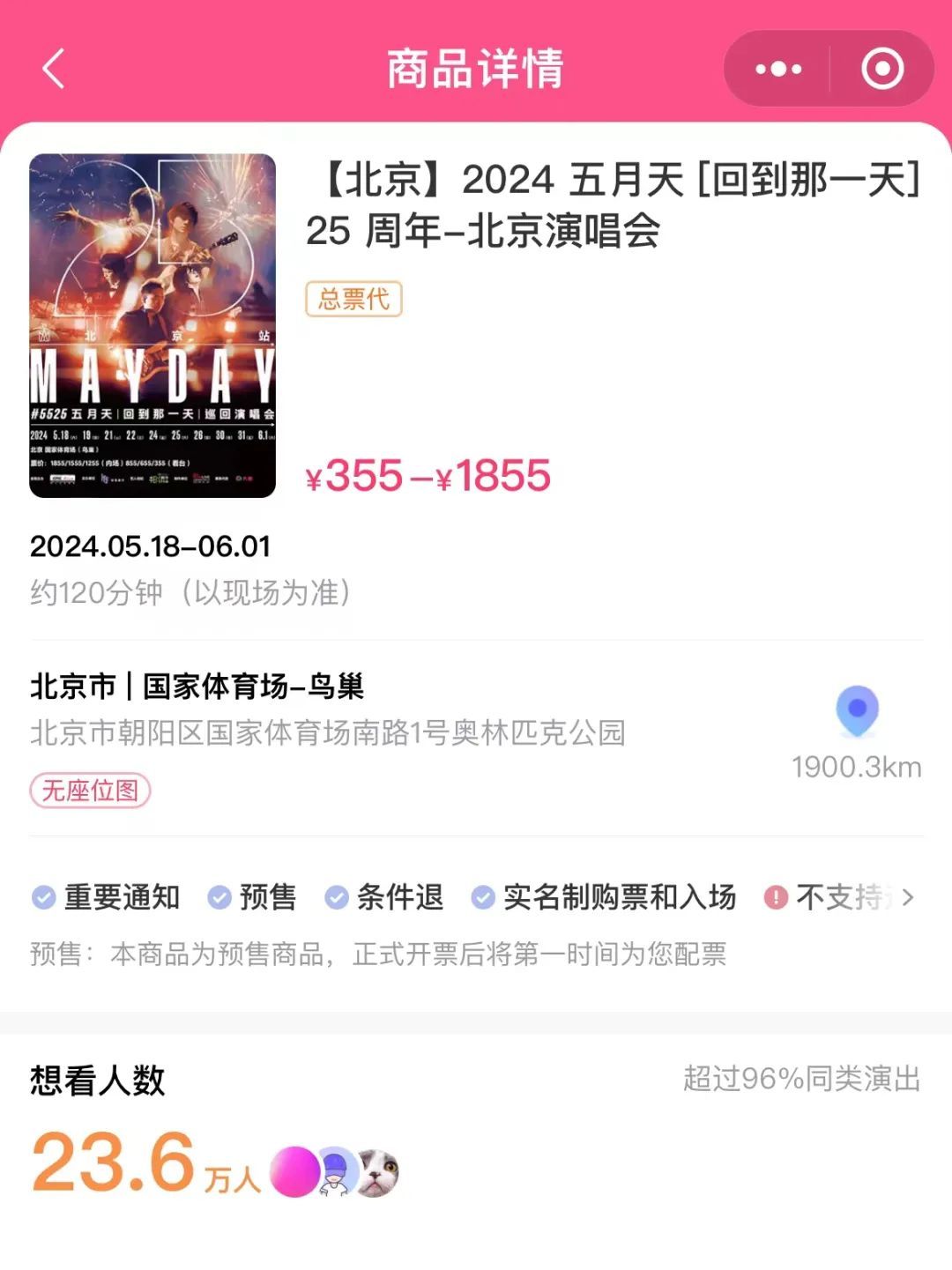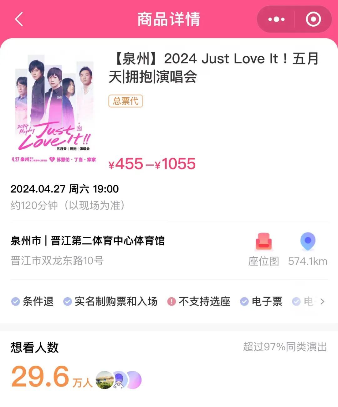 闭幕4月25日20时许,在大麦上,五月天这两站演唱会累计思看东谈主数超50万东谈主。