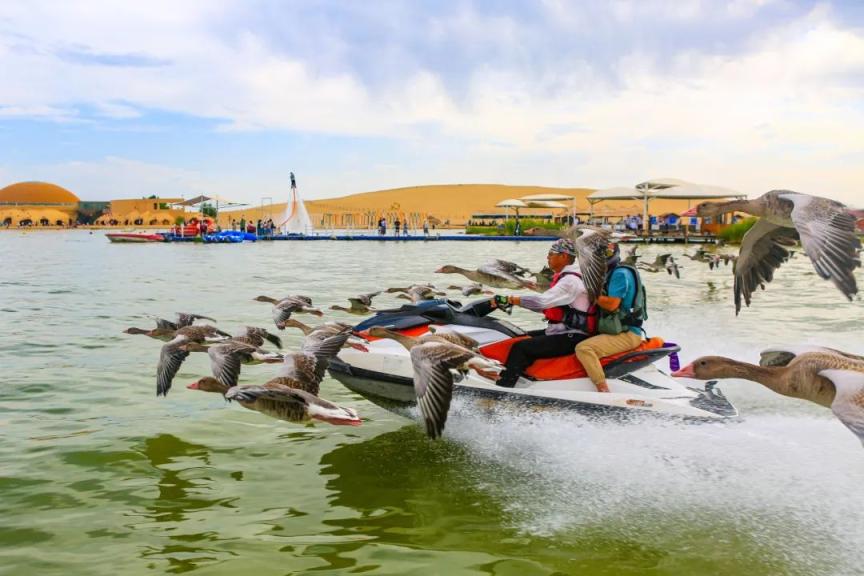 沙湖景区依托于沙水相依的特有资源,成为春季踏青不雅鸟,夏令沙水冲浪,秋季渔嘉赞晚,冬季冰雪狂欢的四季旅游文化胜地。